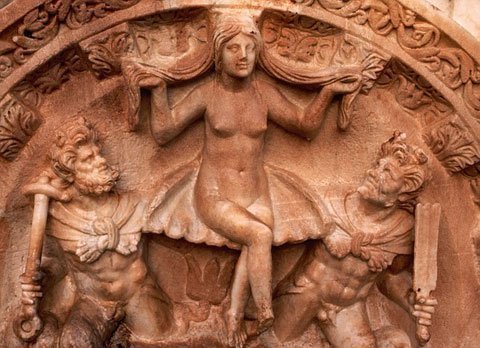 Tác phẩm điêu khắc về nữ thần Hy Lạp Aphrodite, biểu trưng cho tình yêu, sắc đẹp và sự sinh nở, trong trạng thái khỏa thân đang ngồi trên một vỏ sò do 2 vệ sinh nam khiêng, được phát hiện tại thành phố Aphrodisias cổ xưa thời Greco-Roman. Ảnh: Corbis |