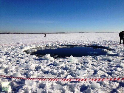 Thiên thạch đã rơi xuống một hồ nước nằm ngay bên ngoài thị trấn Chebarkul thuộc tỉnh Chelyabinsk, tạo ra một miệng hố rộng 6 mét trên lớp băng bao phủ mặt hồ.