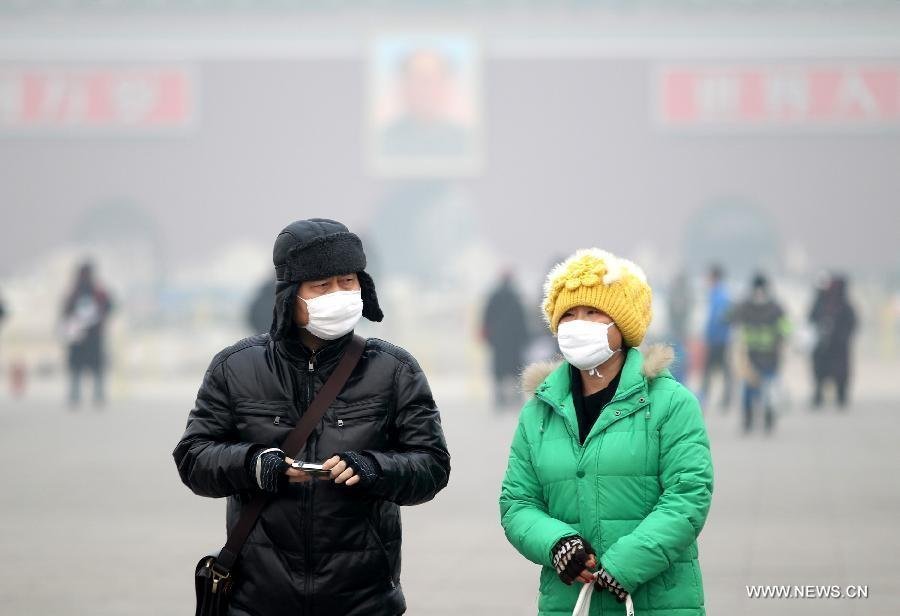 Người dân Bắc Kinh đang phải sống chung với khói bụi. Ảnh: News.cn. |