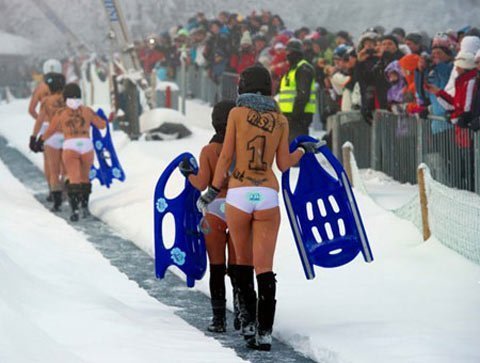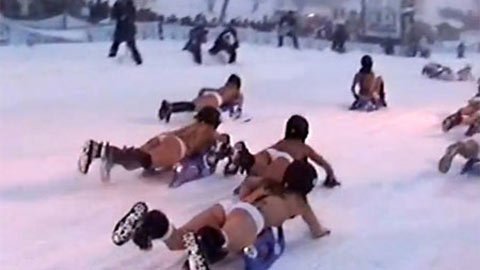 Những người tham gia thi trượt tuyết khỏa thân phải hoàn thành quãng đường dài 100m trên xe trượt tuyết và chỉ được mặc duy nhất quần lót.