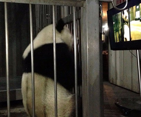 | "Nàng" gấu trúc Ke Lin đang xem đoạn băng kích dục. Ảnh: Quirky China News |