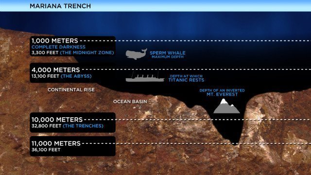 Hình ảnh mô tả độ sâu của vực Mariana. |