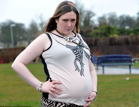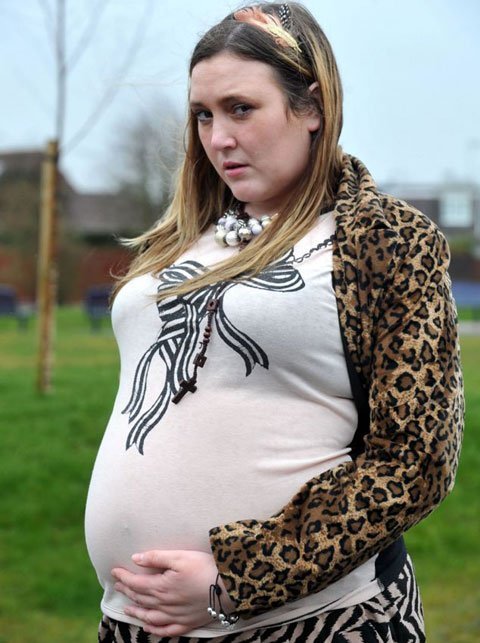 Bụng của Turton bị phình to một cách bí ẩn từ khi cô 18 tuổi. Ảnh: Carters News |