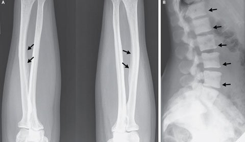 Kết quả chụp X-quang hé lộ các khu vực xương đậm đặc ở đốt sống cột sống và sự vôi hóa các dây chằng ở cánh tay của cô, theo tiến sĩ Sudhaker D. Rao, bác sĩ điều trị chuyên về nội tiết, xương và trao đổi chất tại bệnh viện Henry Ford.