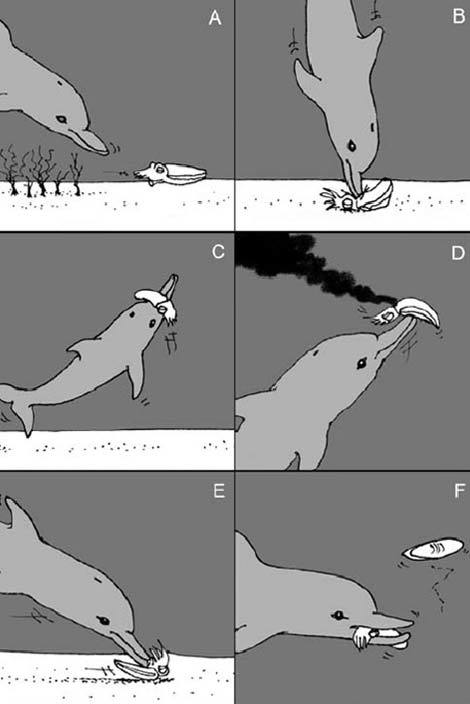 Một nghiên cứu riêng rẽ năm 2005 từng cung cấp bằng chứng đầu tiên về việc, cá heo có khả năng học hỏi theo nhóm và sử dụng công cụ. Các nhà nghiên cứu thậm chí đã chứng kiến một con cá heo mẹ dạy các con gái đập vỡ các loại bọt biển và đeo chúng lên người để bảo vệ thân mình khi chà xát dưới đáy biển ở tây Australia.