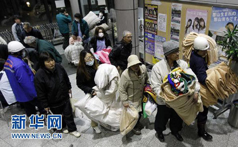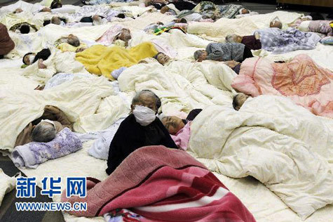 Những người dân sinh sống tại khu vực phụ cận nhà máy điện hạt nhân Fukushima 2 đang nghỉ ngơi tại một trung tâm cứu nạn khẩn cấp Koriyama sáng 13/3. |