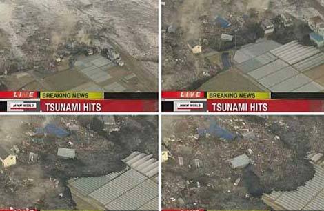 Hình ảnh sóng thần tấn công Nhật Bản sau động đất. Ảnh: NHK.