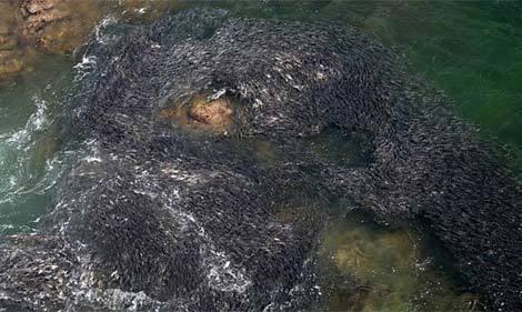Hàng nghìn con cá đã tập trung thành những đàn lớn bơi dọc bờ biển Acapulco (Mexico). Nhiều người tin rằng, hiện tượng kỳ lạ này có liên qua tới trận động đất mạnh 8,9 độ richrer và sóng thần xảy ở Nhật Bản vào ngày 11/3 vừa qua.