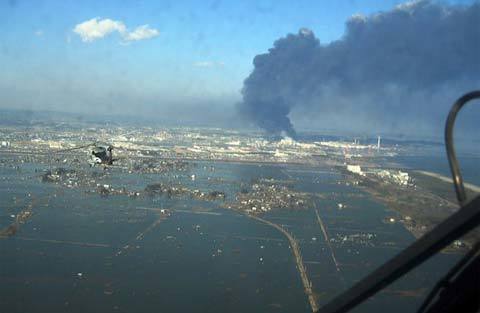 | Ảnh chụp qua vệ tinh ngày 14/3 cho thấy, lò phản ứng số 3 tại nhà máy hạt nhân Fukushima Daiichi đang bốc cháy sau thảm họa động đất và sóng thần hồi cuối tuần trước. Ảnh: Reuters. |