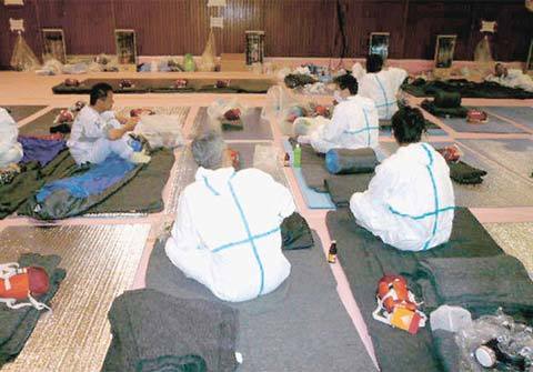 | Các công nhân TEPCO tham gia sứ mệnh kiểm soát thảm họa tại nhà máy điện hạt nhân gặp sự cố Fukushima số 1 đang nghỉ ngơi tại một phòng tập thể dục của nhà máy điện Fukushima số 2 cách đó 10km về phía nam. Ảnh: Kyodo. |