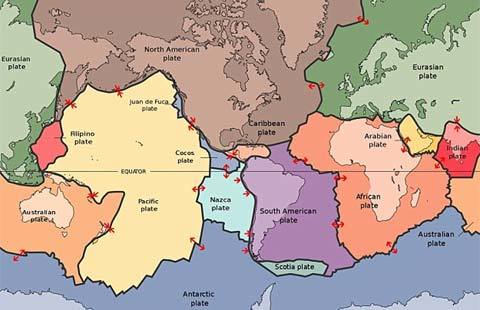 Việc xác định các ranh giới mảng giúp người ta phân chia vỏ thạch quyển của trái đất thành 8 mảng kiến tạo chính: