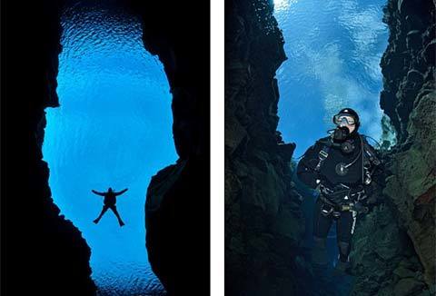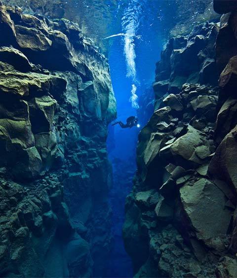 Bơi xuyên qua một khu vực có vẻ đẹp tự nhiên tuyệt vời gần Iceland, một thợ lặn người Anh đã chụp được những bức ảnh cho thấy lỗ hổng ngày càng lớn giữa hai hai mảng kiến tạo Bắc Mỹ và Á - Âu.