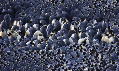Một đoạn video mới công bố của các nhà khoa học cho thấy, các con chím cánh cụt hoàng đế ở Nam Cực tập hợp thành nhóm và tạo ra một làn sóng để giúp chúng giữ ấm trong thời tiết băng giá ở vùng cực.