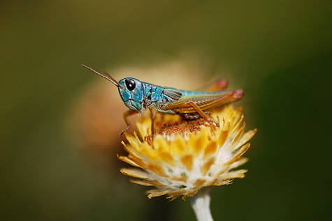 Loài châu chấu "tắc kè" đổi thành màu lam để tăng sức chiến đấu bảo vệ bạn tình. Ảnh: Flick. |