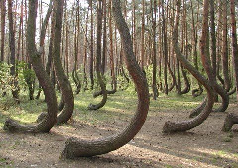 Một khoảnh nhỏ của một khu rừng ở phía tây Ba Lan có khoảng 400 cây thông phát triển khá đặc biệt với phần thân dưới của các cây đều uốn cong một góc khoảng 90 độ về phía bắc.