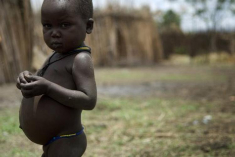 | Một đứa bé người suy dinh dưỡng ở Karramoja, thuộc Uganda, một trong những khu vực kém phát triển nhất của Đông Phi. |