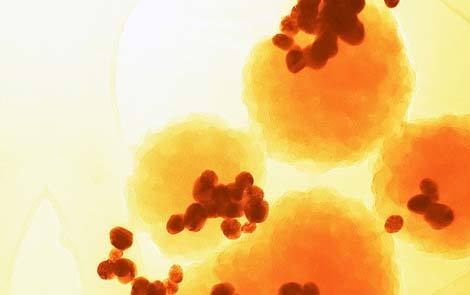 | Hình các tế bào ung thư bám vào tế bào bình thường ở người trước khi điều trị. Ảnh: Alamy. |