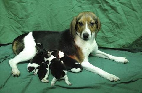 | "Nàng" chó biến đổi gen Tegon cùng các các con tại Đại học quốc gia Seoul (SNU). Ảnh: Reuters. |
