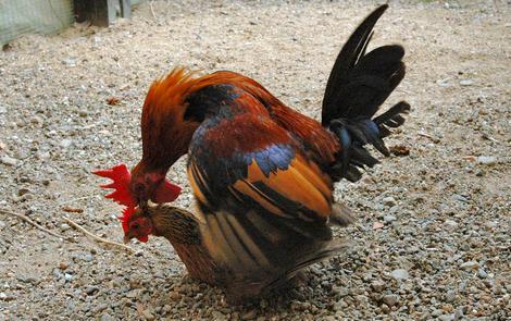 | Gà mái có thể bài tiết ra ngoài 80% lượng tinh trùng của con trống ngay sau khi giao phối nếu nó không mong muốn con trống đó làm cha của đàn gà con. Ảnh: Ox.ac. |