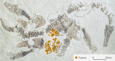 TS Robin O'Keefe thuộc ĐH Marshall, bang Virginia (Mỹ) và TS Luis Chiappe – giám đốc Viện Khủng long cho biết, hóa thạch phôi thai bên trong hóa thạch “mẹ” bò sát biển đang phát triển cơ thể hoàn chỉnh, bao gồm xương sườn, 20 đốt sống, xương vai, xương hông và xương vây mái chèo.