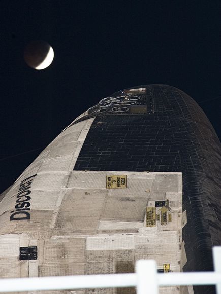| Nguyệt thực nhìn từ trung tâm vũ trụ Kenedy, bang Florida, nước Mỹ. |