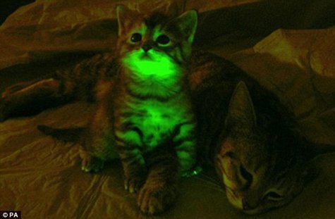 Mèo biến đổi gen có thể phát quang dưới áng sáng tia cực tím. |