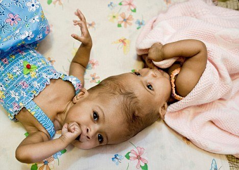 Cặp song sinh Rital và Ritaj trước khi phẫu thuật. Ảnh: Daily Mail. |