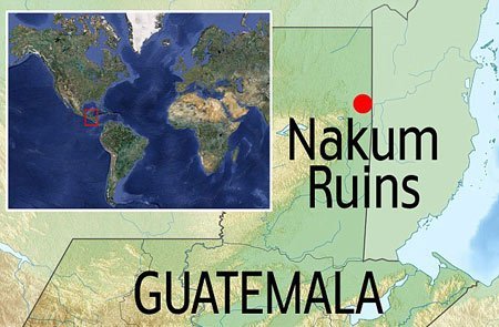 | Vị trí khu phế tích Nakum, nơi phát hiện thấy hai ngôi mộ. |