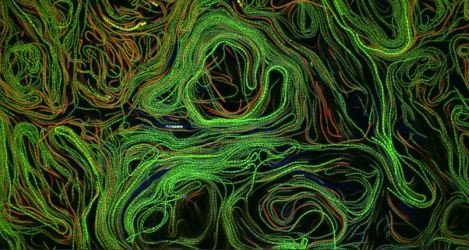 Một lớp tảo được chụp phóng đại trong như một tác phẩm nghệ thuật trừu tượng.