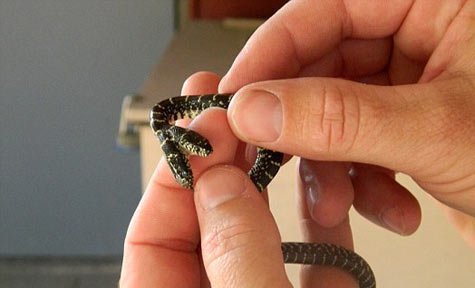 Trong khi đang phun thuốc diệt cỏ trong vườn nhà, ông Paul Carver đã phát hiện thấy một vài con rắn nhỏ. Ông đã tiến lại gần những con rắn này để kiểm tra và phát hiện thấy một con rắn đen vằn trắng có tới hai đầu.
