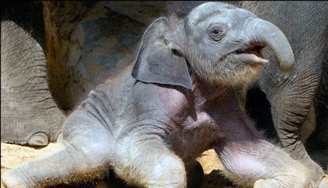 Hình ảnh một chú voi được sinh ra tại một vườn thú ở Hanover, Đức và đang chơi với một nhóm bạn của nó. Trong năm 2010, đã có bốn con voi con được sinh ra tại vườn thú này. Theo Sở thú quốc gia Smithsonian thì có khoảng 30.000 con voi châu Á đang tồn tại trong môi trường tự nhiên và bị đe dọa nghiêm trọng bởi việc săn bắt lấy ngà.