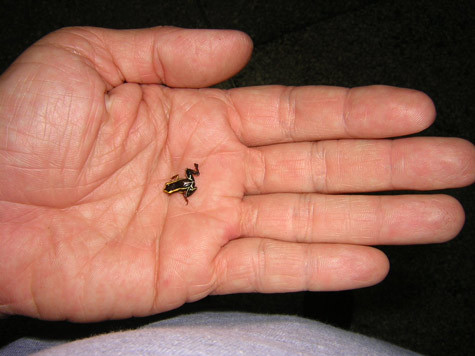 | Con nhái độc Eleutherodactylus dài không đến 10mm, nằm gọn trong lòng bàn tay. Ảnh: Pravda. |