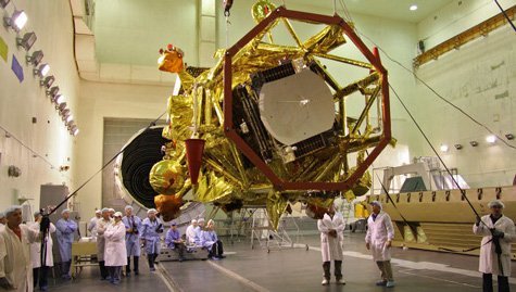 Tàu thám hiểm sao Hỏa Phobos Grunt trước khi được phóng lên vũ trụ. Ảnh: Rian. |