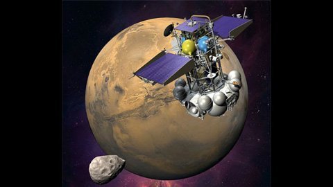 “Phobos-Grunt” là trạm tự động vũ trụ đầu tiên sau 15 năm được gửi đi để lấy mẫu đất đá trên vệ tinh Phobos của sao Hoả, phóng lên từ sân bay vũ trụ Baiconur ngày 9-11, nhưng động cơ để đi tiếp theo đường bay vạch sẵn không khởi động được.