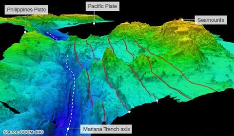 Bản đồ Vực Mariana. Ảnh:BBC.