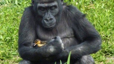 Khỉ đột âu yếm vịt con, chim cánh cụt nắm tay nhau tình tứ, gấu
