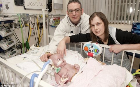 Bé gái Jasmine Carr được phát hiện mắc hội chứng giảm sản tim trái – một phần của tim không hình thành - từ khi được 20 tuần tuổi trong bụng mẹ. Các bác sĩ nói với bố mẹ của Jasmine rằng cô bé cần được phẫu thuật ngay sau khi chào đời để duy trì sự sống.