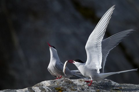Để chinh phục con cái, chim nhạn biển đực thường thể hiện sự lãng mạn khi mang cho con cái những món ăn ngon nhất, cụ thể là các con cá. Thông thường con cái thường quan tâm đến những con đực “giàu có”, tức kích thước và số lượng cá mà con đực kiếm được.