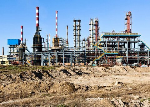 Các cột ống cao vút tại một nhà máy lọc dầu và khí ở Boxing, tỉnh Shandong. Một phần năng lượng để vận hành hệ thống này được một nhà máy năng lượng sinh khối gần đó cung cấp.