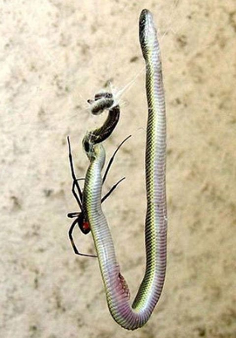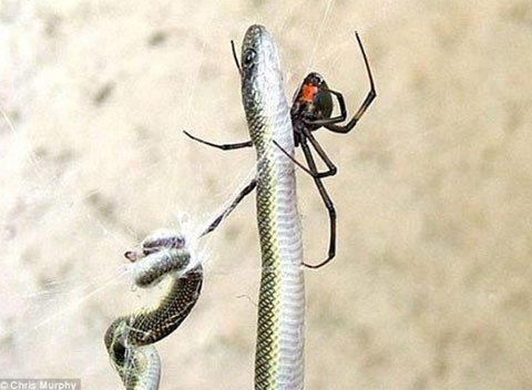 Nếu không tận mắt chứng kiến, bạn khó có thể tin rằng rắn lại trở thành con mồi của nhện – sinh vật có kích thước cơ thể nhỏ hơn nhiều và thường được coi là “hiền” hơn.