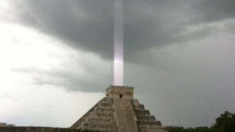 người Maya tại Mexico, với một luồng sáng được chiếu thẳng từ trời