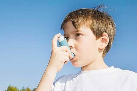 Một bé trai đang sử dụng bình xịt chống hen suyễn. Ảnh: Daily Mirror |
