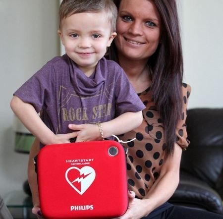 Gia đình Aaron đã được các bác sĩ hướng dẫn sử dụng máy khử rung tim bằng tay để cấp cứu trong trường hợp cậu bé lên cơn suy tim tại nhà. Cô Jolaine Clark, mẹ của Aaron, đã phải nghỉ làm để chăm sóc con và luôn mang máy khử rung tim bên mình 24/24.