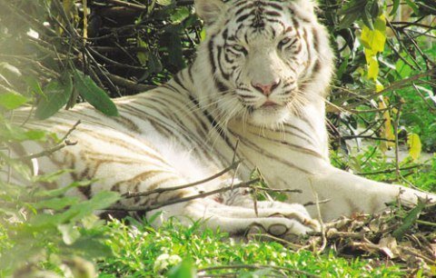 Hổ trắng tại khu du lịch sinh thái Trại Bò. Ảnh: Khánh Hoan - Thanh Niên |