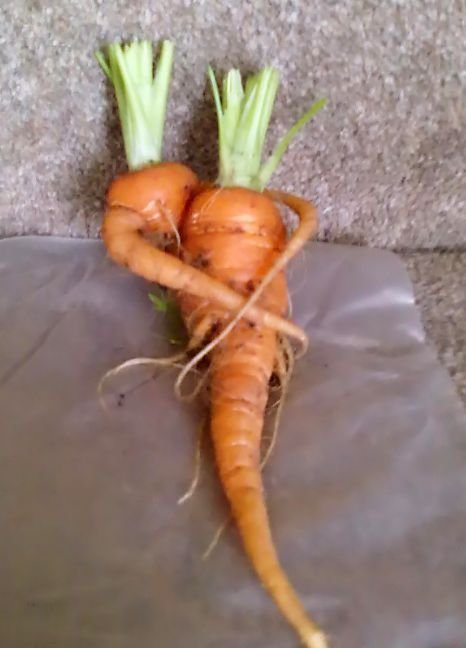 Bà Sue Smith ở Wales (Anh) đã thật sự choáng váng sau khi đào được hai củ cà rốt đang “ôm ấp” nhau.