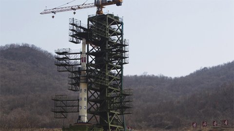 Tên lửa Unha-3 trên bệ phóng. |