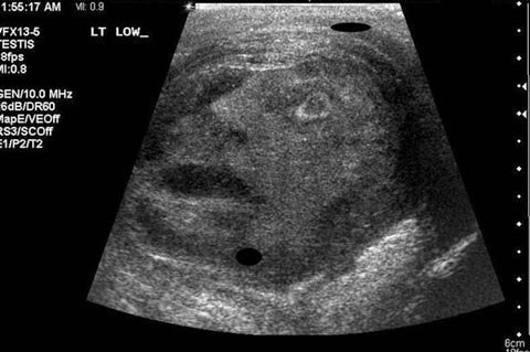 Hình một khuôn mặt đau khổ hiện lên trong một bức ảnh siêu âm tinh hoàn. Ảnh: Daily Mirror |