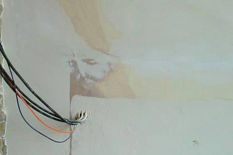Khuôn mặt Chúa Jesu trên bức tường ẩn giấu sau một dàn âm thanh. Ảnh: Daily Mirror |