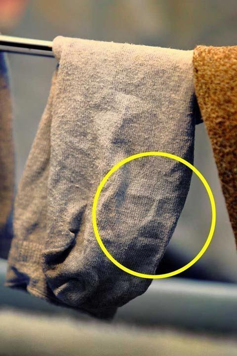 Khuôn mặt Chúa thậm chí còn có thể nhìn thấy được trên một chiếc tất nhăn nhúm. Ảnh: Daily Mirror |