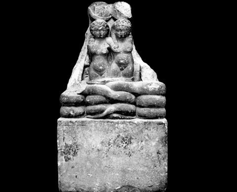 Bức tượng điêu khắc về hai đứa con sinh đôi của Nữ hoàng Cleopatra VII và người tình Mark Antony. Ảnh: Discovery |